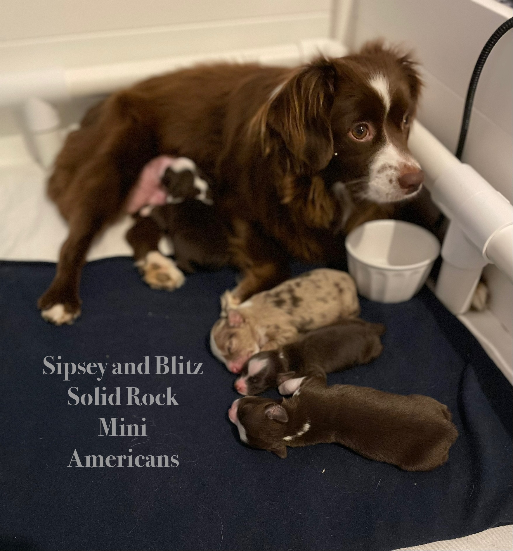Sipsey & her newborn pups pictured at three days old.